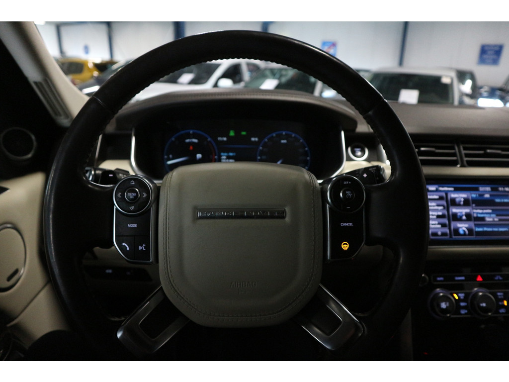 Druk op de “i”-knop aan de zijkant van het stuur en de kilometerstand verdwijnt uit beeld. Maar eerlijk gezegd: tijdens het rijden denk je er sowieso niet aan. Deze specifieke auto rijdt geruisloos, soepel en probleemloos. Alle functies werken, alle knoppen doen wat ze moeten doen en er zijn géén storingen aanwezig. Dat is bij een Range Rover al bijzonder, laat staan bij één met deze kilometerstand.