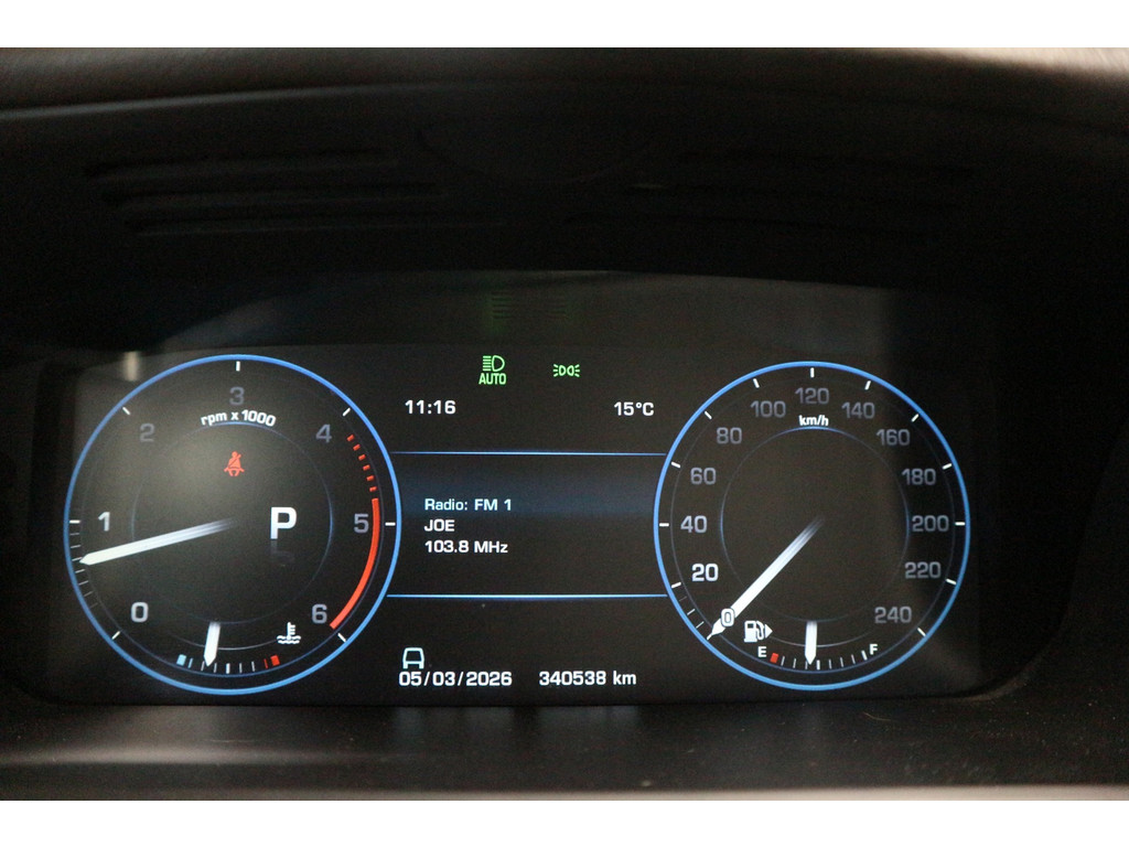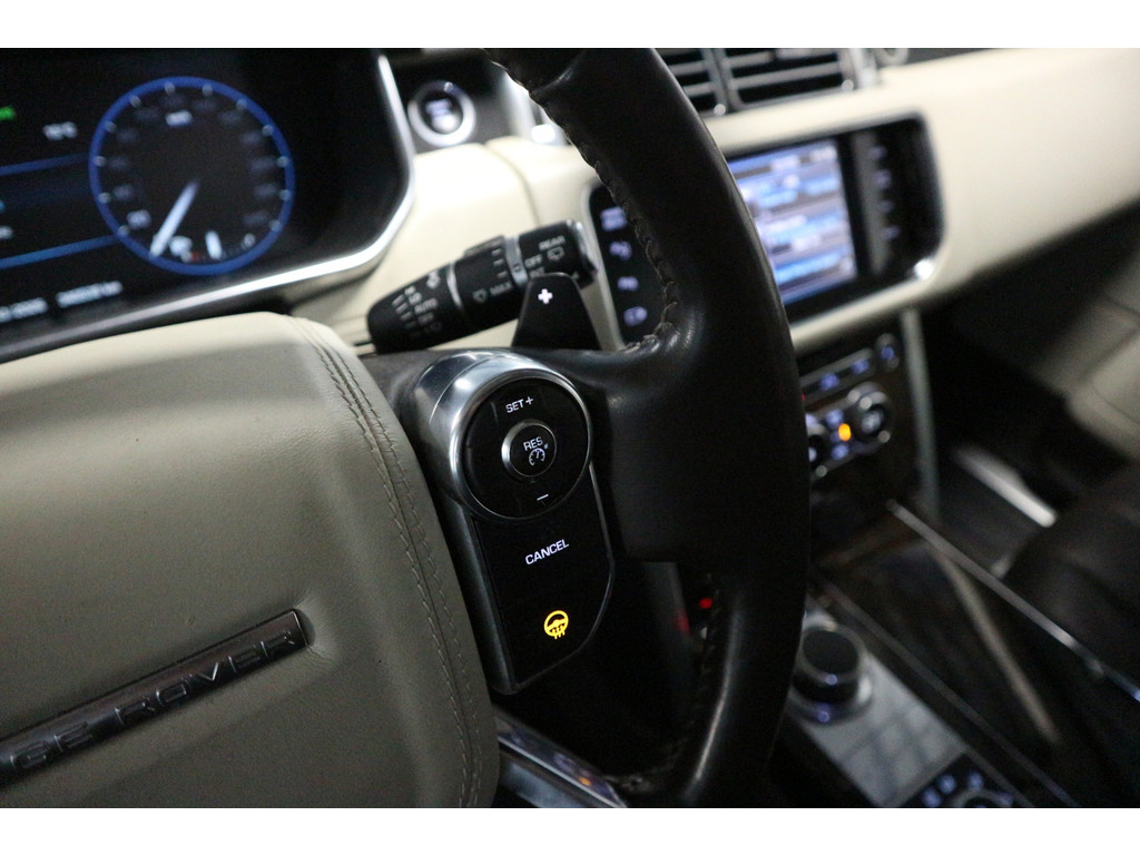 Druk op de “i”-knop aan de zijkant van het stuur en de kilometerstand verdwijnt uit beeld. Maar eerlijk gezegd: tijdens het rijden denk je er sowieso niet aan. Deze specifieke auto rijdt geruisloos, soepel en probleemloos. Alle functies werken, alle knoppen doen wat ze moeten doen en er zijn géén storingen aanwezig. Dat is bij een Range Rover al bijzonder, laat staan bij één met deze kilometerstand.